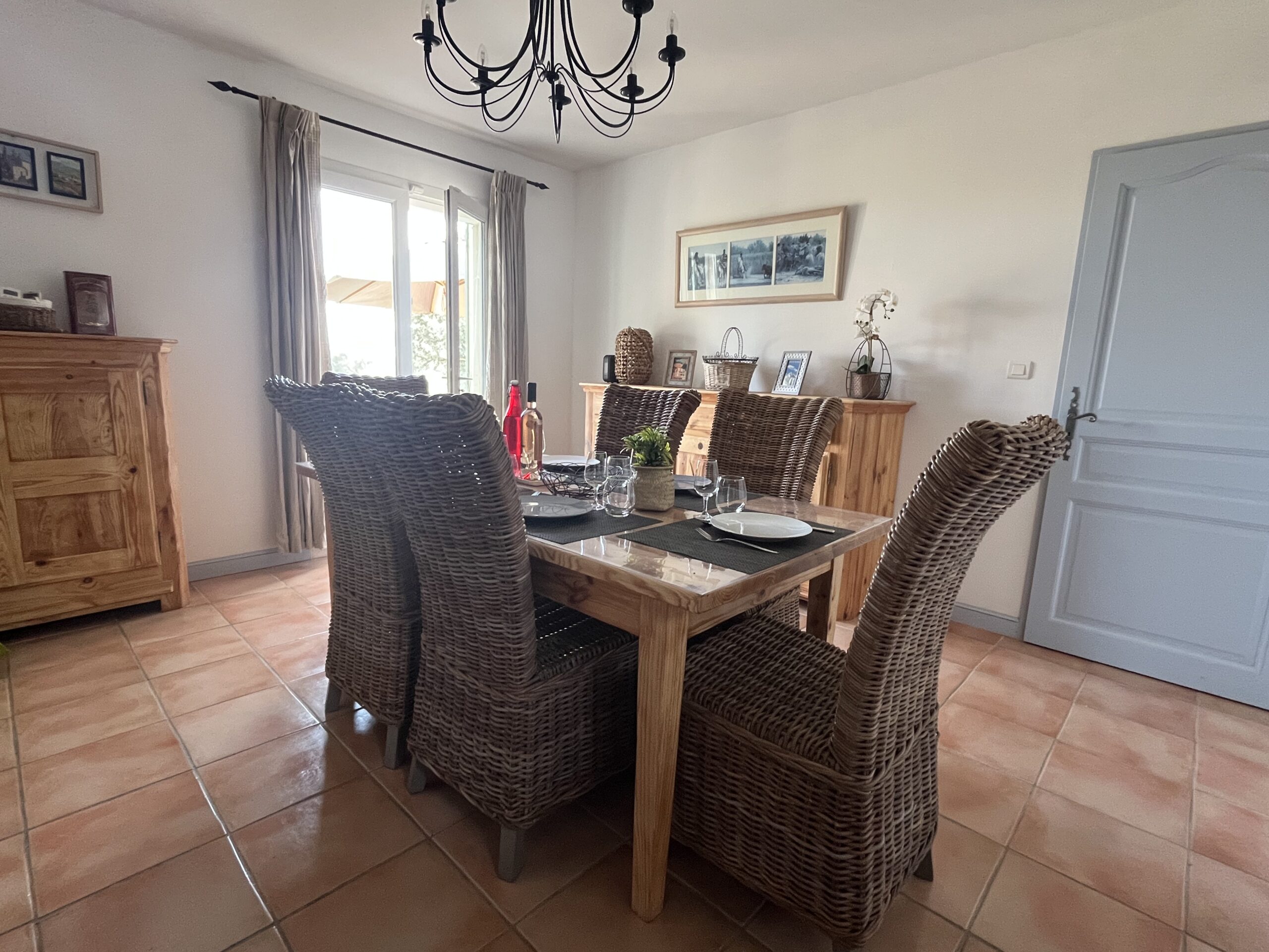 La maison se déploie sur deux niveaux et propose des espaces de vie agréables, alliant charme provençal et équipements modernes.